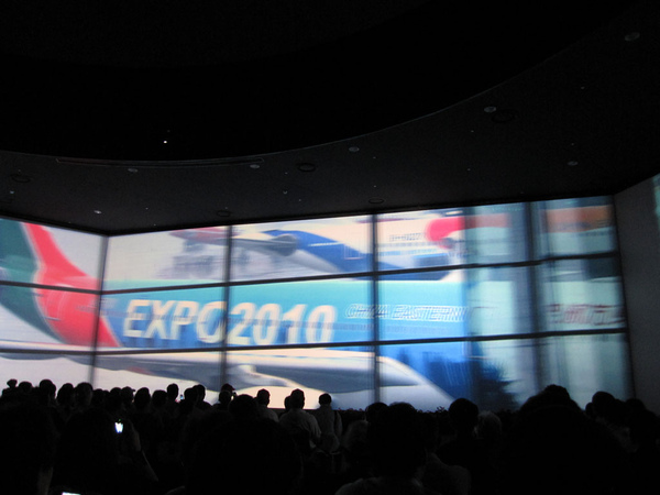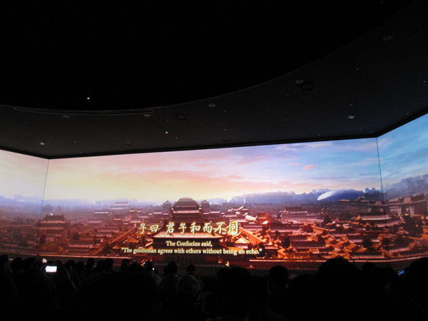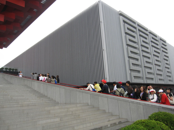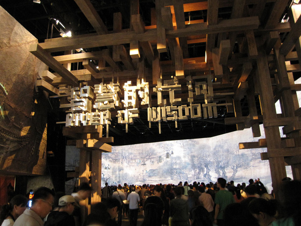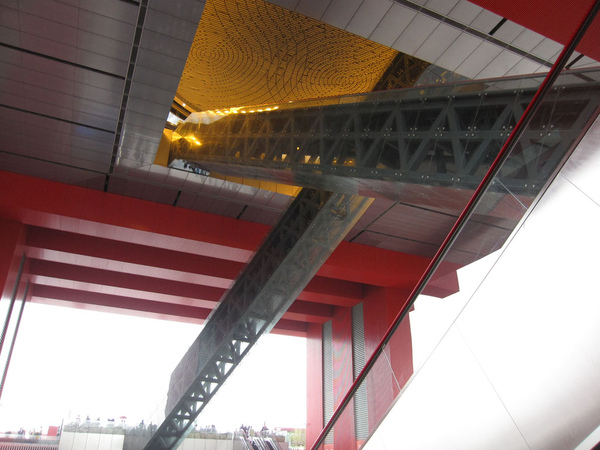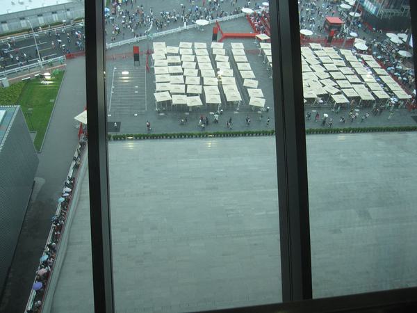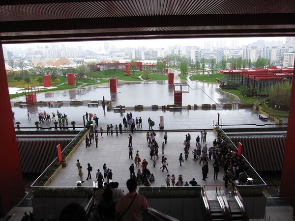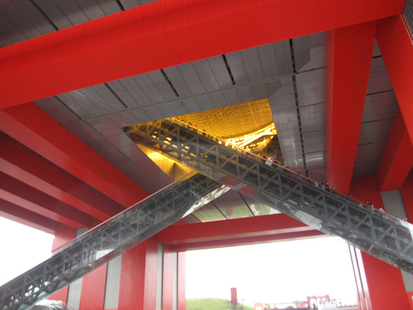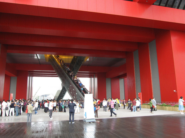 往下看還可以看到下面正在準備進入中國館的民眾, 幾乎是在你腳踩的正下方, 很有意思的景象.
