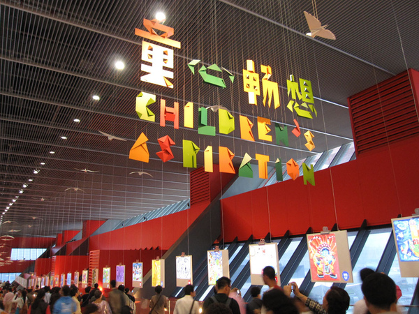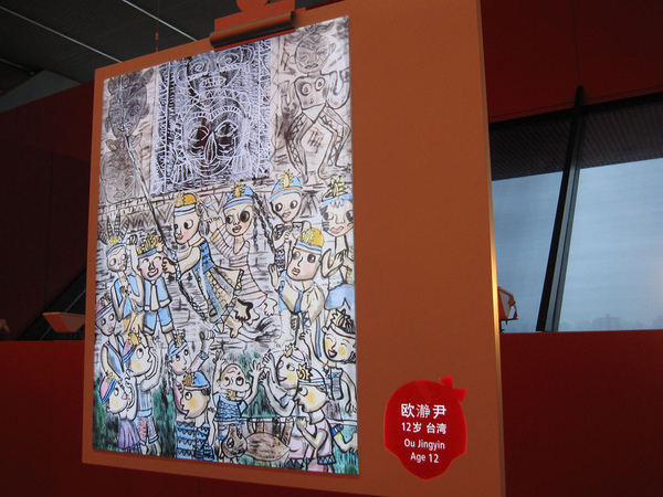 接著就是準備要下樓到下一個主題位於10樓的「尋覓之旅」了, 中間的通道弄成另一個小展區叫「童心暢想」, 放了一堆小朋友的畫作... 老實說我覺得真是老梗...老梗透了!!