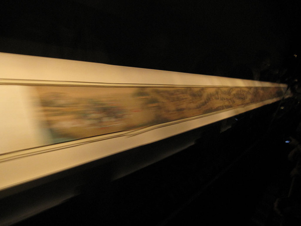觀眾經由一條長10公尺的輸送帶通過仇英版真跡前面不能在真跡前駐足瀏覽,