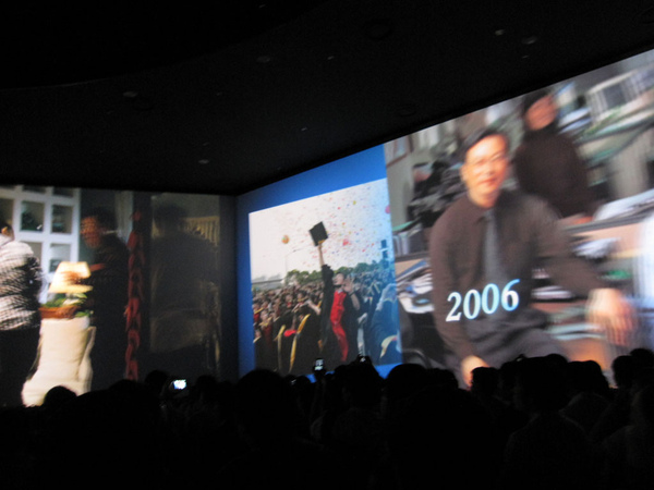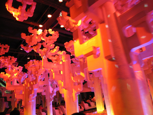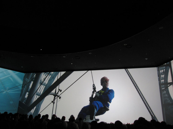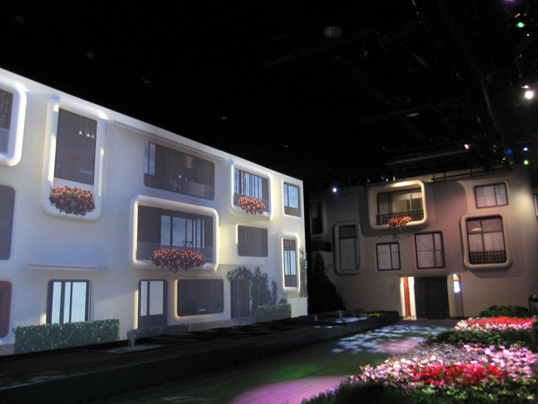 看不太出來它是用幾個投影機組合而成的, 那麼大的面應該不太可能一個面只用一部投影機.