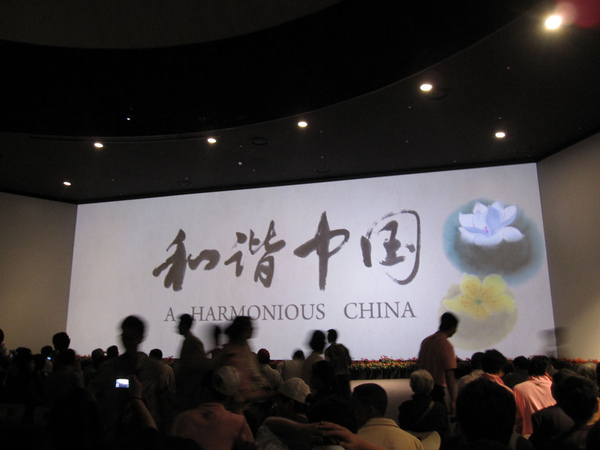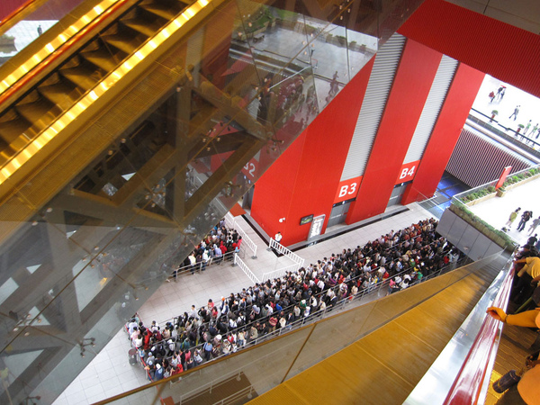 一開始民眾排隊進入之後要先坐電扶梯往上走, 算是正式進入中國館的範圍, 上去之後是三樓.